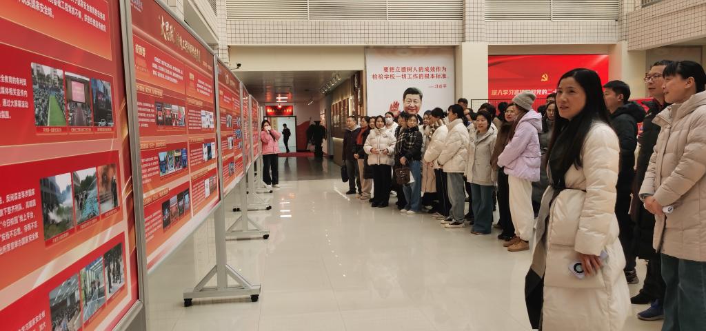 成果展围绕“党建领航、思政导航、课程启航、校园文化助航、心理护航、服务续航、师德师风定航、安全稳定远航”八大行动,通过图文展板、特色案例、成果集锦等丰富形式,系统呈现了学校在思政育人工作中的实践探索与阶段性成效,清晰展现了思政工作与人才培养、事业发展的深度融合。